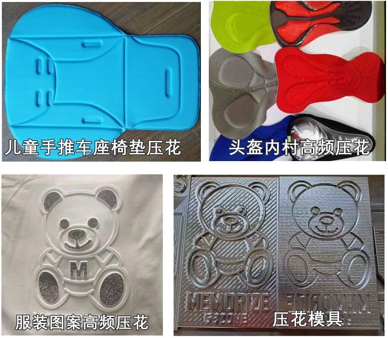 服裝加工行業(yè):PVC充氣坐墊靠墊壓花, 皮革壓花、皮革凹凸壓花、服裝壓花、植絨面料凹凸壓花,皮具壓字母、塑膠充氣制品包括充氣玩具、充氣水上用品、充氣沙發(fā)、充氣床墊、充氣廣告模型等系列產(chǎn)品。汽車腳墊、各類腳墊、坐墊壓花、鞋類制品中的壓花,壓防墊、(歡迎光臨地毯)雙吸塑包裝,吸塑與紙卡熱合、五金工具、LED節(jié)能燈、PVC高電位焊接、皮革、吹氣玩具,游泳圈、充氣玩具、各種凹凸形狀的花紋圖案、字母文字的壓制。