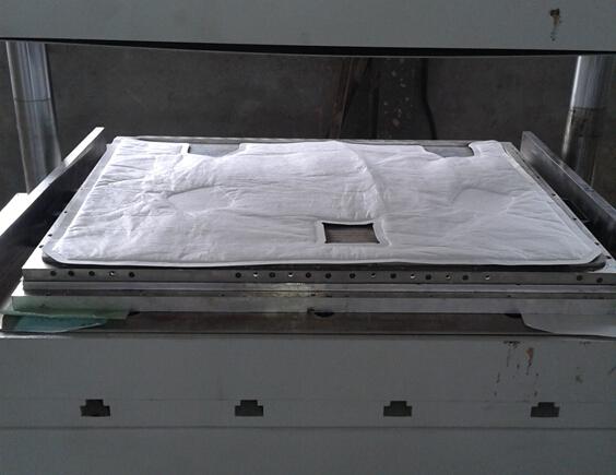 汽車吸音棉自動同時熔斷機:適用于PETG,遮陽板,雙組份吸音棉,汽車吸音棉PET+PP熔接成型裁斷一次性完成。