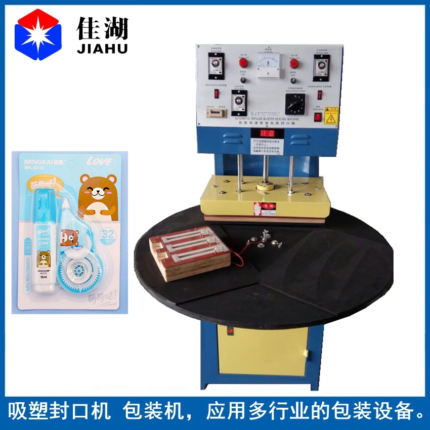 自動(dòng)吸塑包裝封口機(jī)用于PVC、PE、PP等塑料吸塑成型泡殼與紙板封合,適用于各種玩具、文具、日用品、五金工具的吸塑封口包裝。