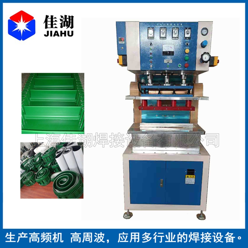 PVC工業(yè)皮帶高頻機(jī)、工業(yè)皮帶輸帶焊接機(jī)、跑步機(jī)帶高頻焊接機(jī)、輸送帶裙邊擋板焊接機(jī)品種很多,適用于聚氯乙烯(PVC)、聚氨酯(PU)輸送帶裙邊擋板導(dǎo)條包邊的熔接或含有PVC成分的材質(zhì)的軟性橡膠塑料的高周波熔接拼接。工業(yè)皮帶裙邊擋板熔接機(jī),主要針對(duì)PVC/PU材料的工業(yè)輸送帶加裙邊或擋板、同步帶加擋板,利用高頻電磁場(chǎng)使其內(nèi)部分子重新排列達(dá)到熔接目的,熔接部位美觀牢固且強(qiáng)度接近于原材料本身強(qiáng)度。可根據(jù)生產(chǎn)廠(chǎng)商的產(chǎn)品大小定制設(shè)備。